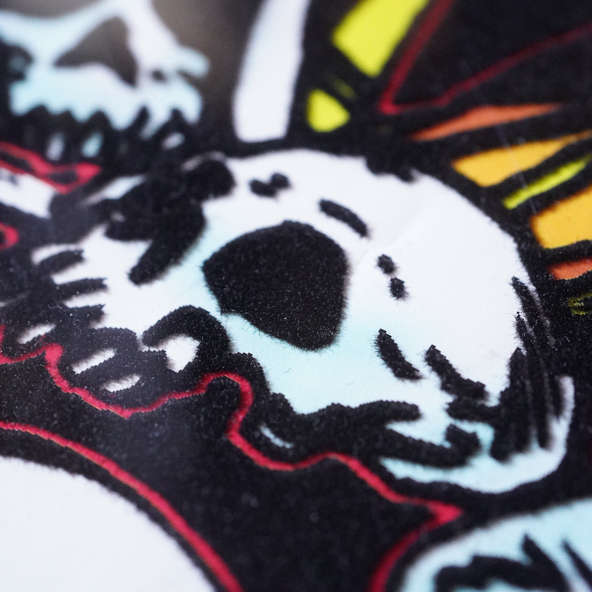 黒の部分はフロッキープリントと呼ばれる毛羽だったプリントになっており、立体感があります。