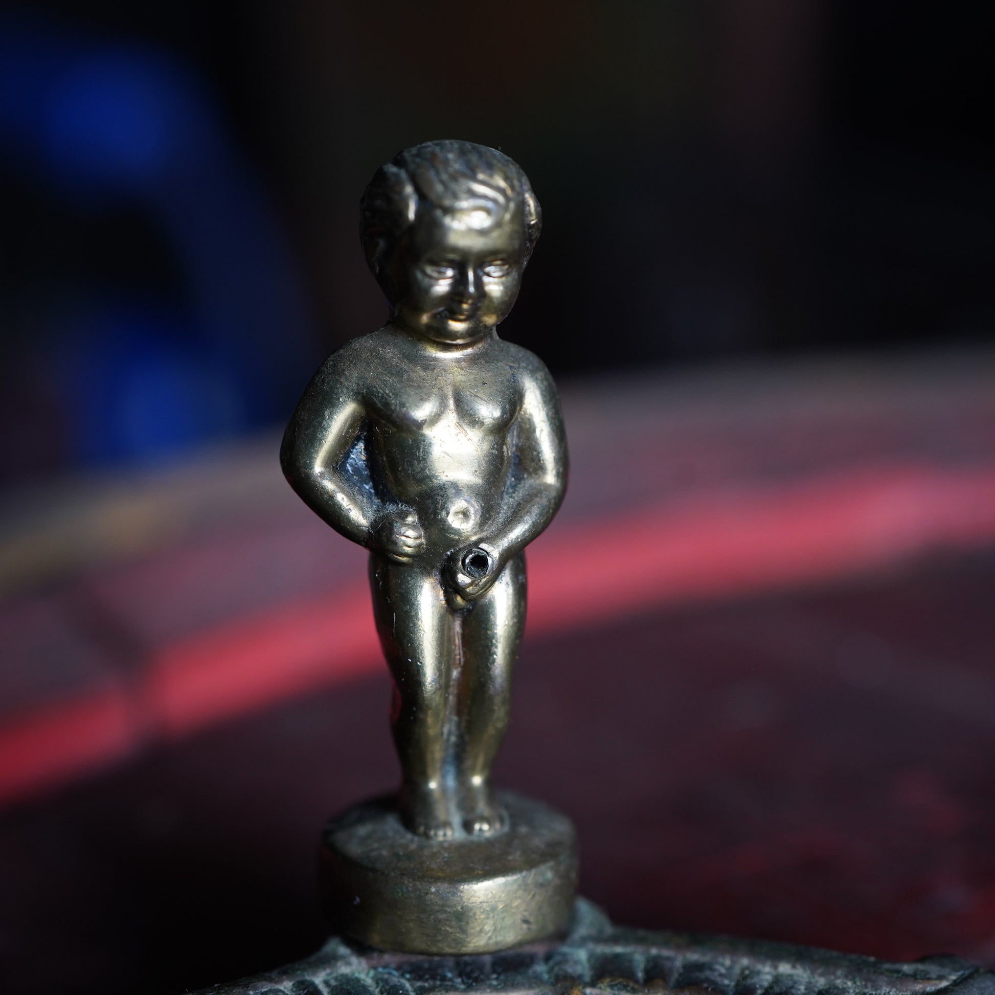 ブリュッセルの象徴として知られる小便小僧をかたどったデザインで、素材は真鍮製。