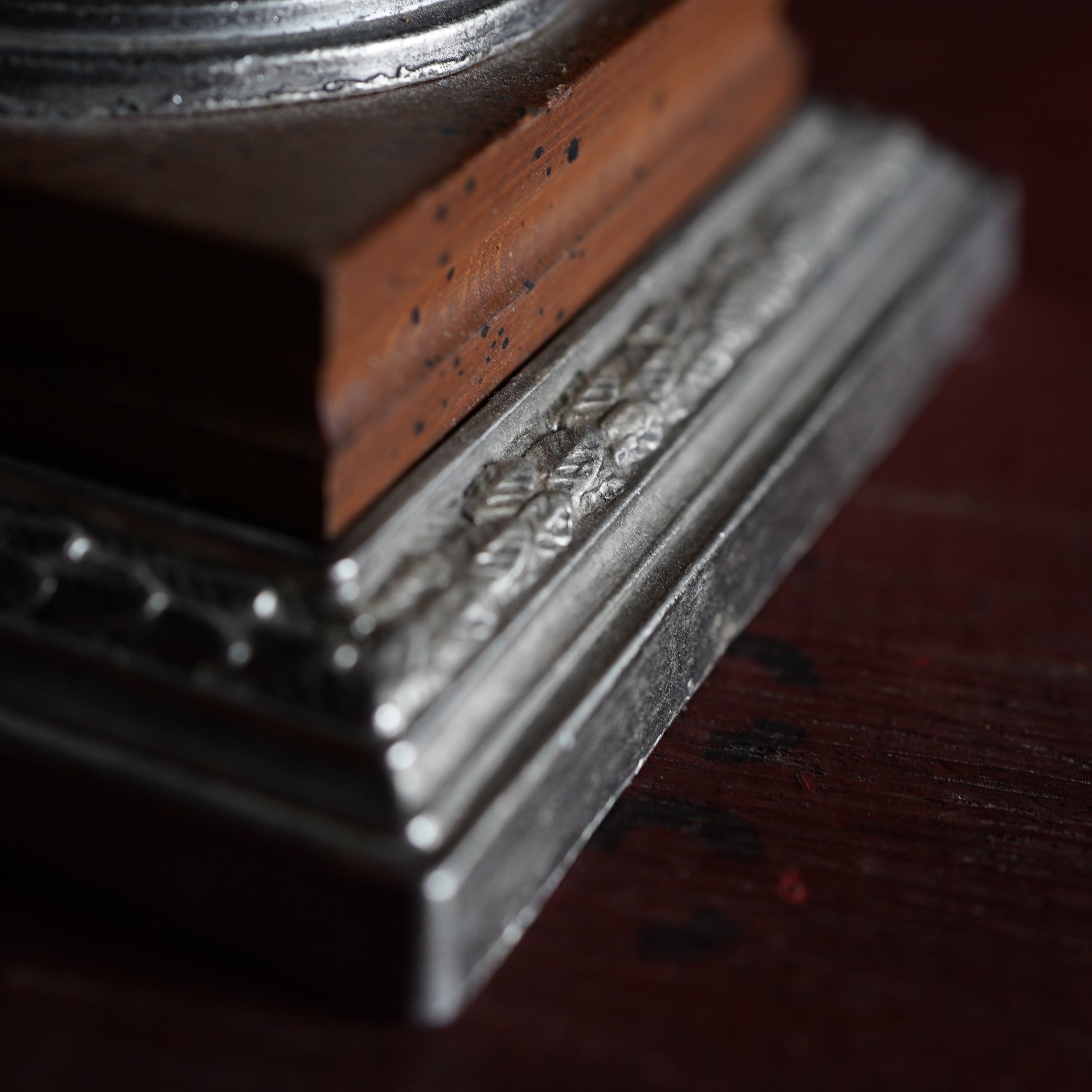 金属、木、で仕上げられた高級感のある一品です。