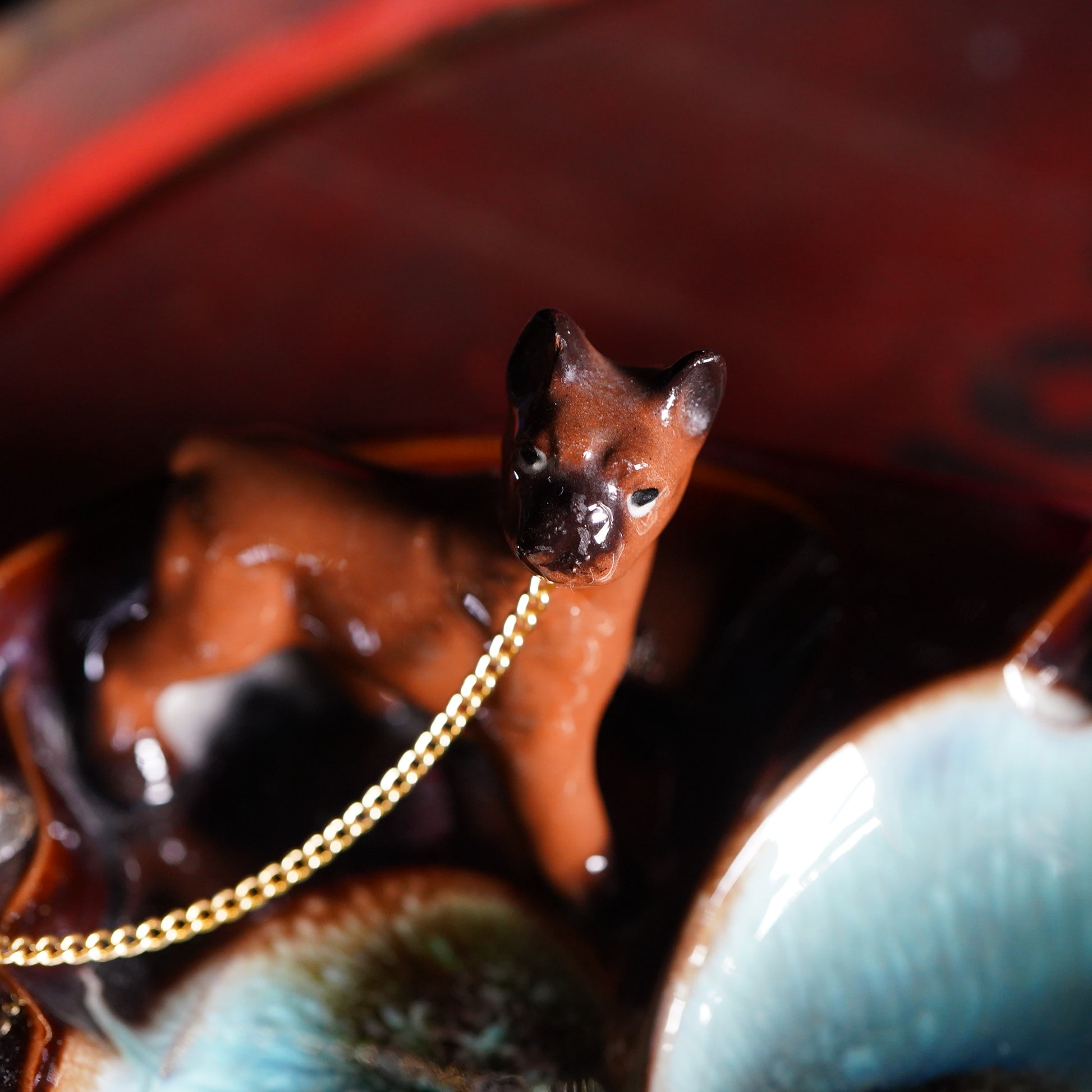 チェーンで繋がれたワンちゃんモチーフがなんとも愛らしく、思わず飾っておきたくなる一品です。