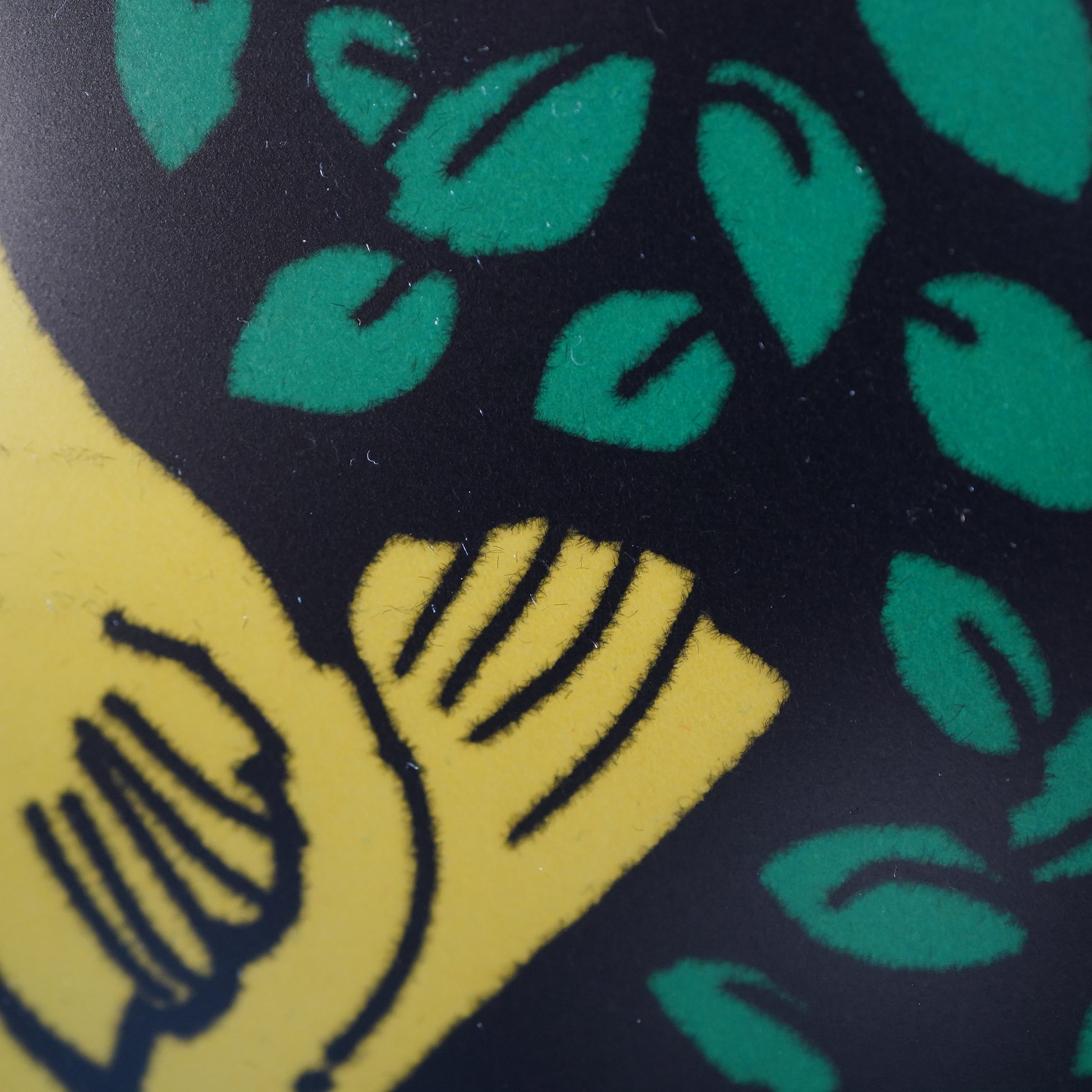 黒の部分はフロッキープリントと呼ばれる毛羽だったプリントになっており、立体感があります。