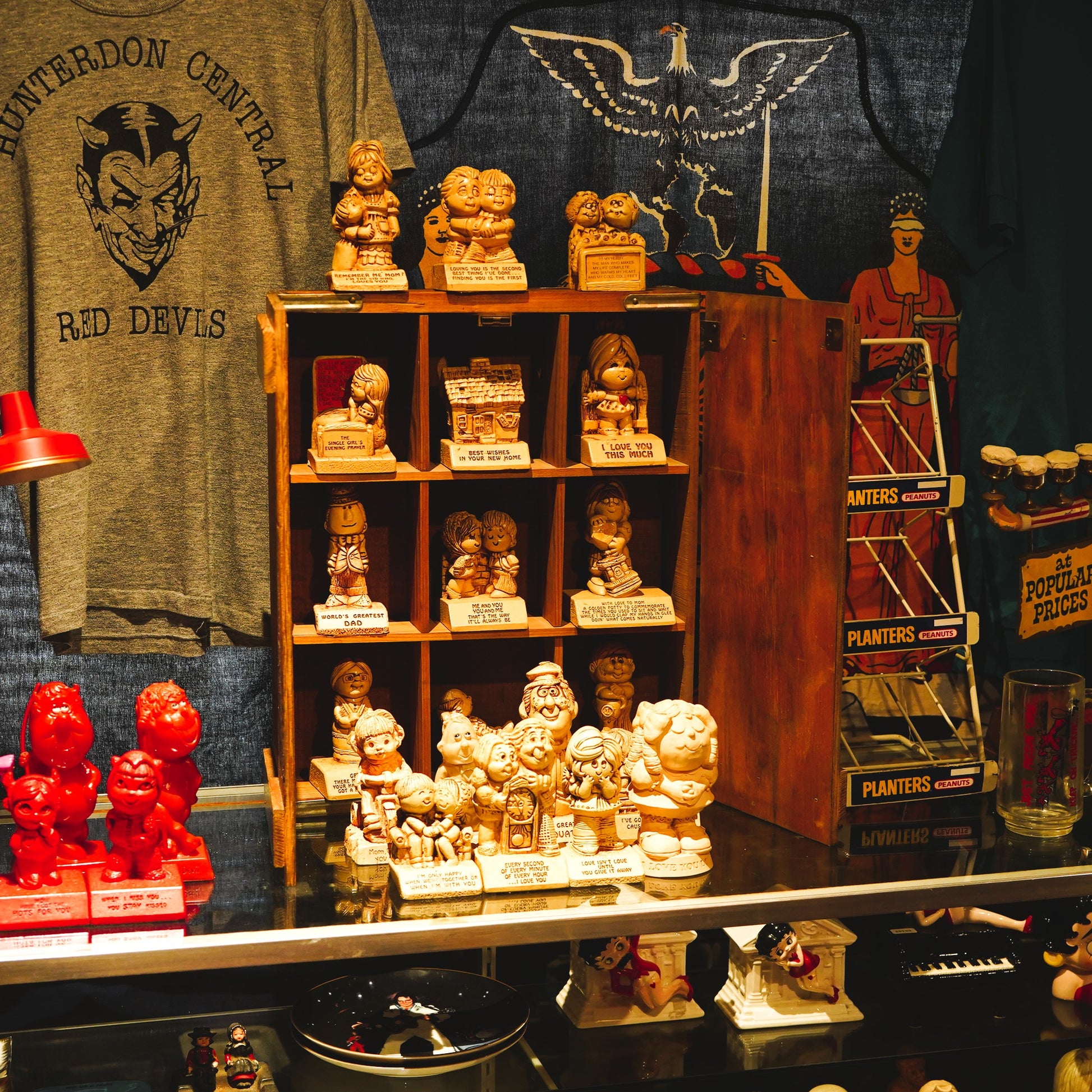 フロントをパカっと開くと棚仕様になっており、コレクションディスプレイに最適。