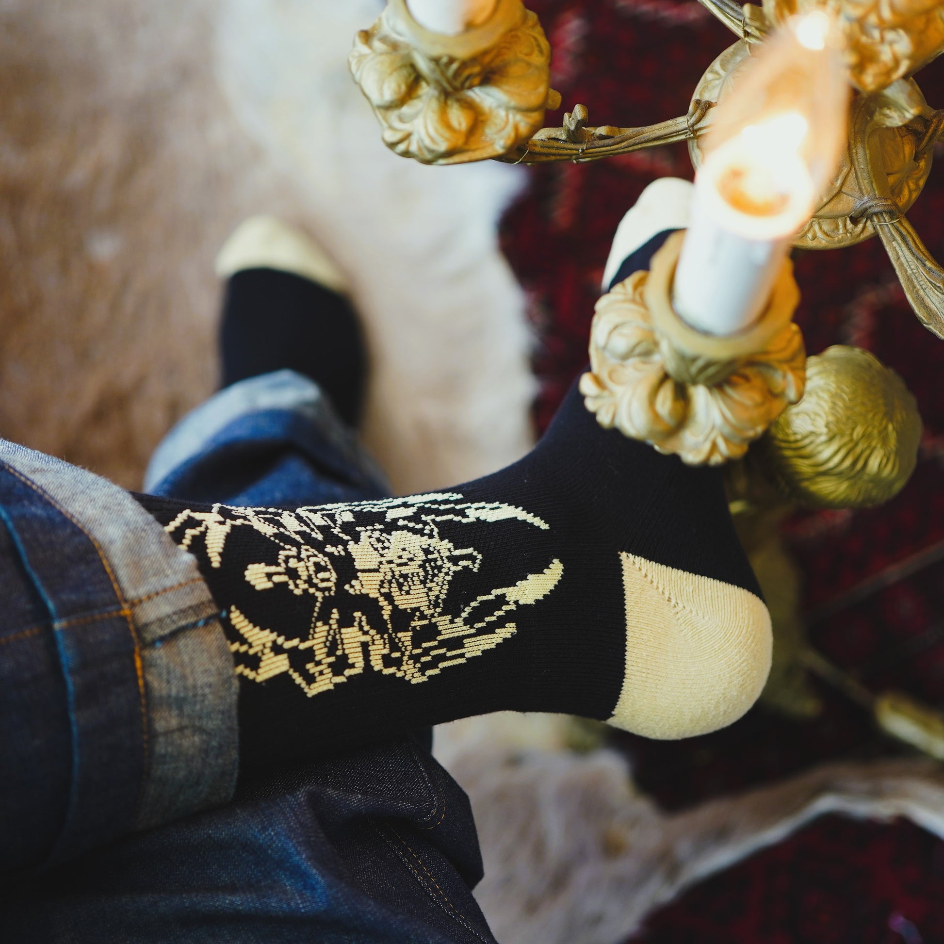 相反する二つのモチーフが一対となって足元を彩ります。